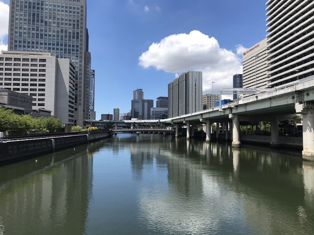淀屋橋駅からキタ方面に歩く最中に通りました。堂島川に架かる歴史ある橋です。見た目からクラシカルで雰囲気がありますが、橋からの眺めもレトロモダン風味があって良いですね。1935年に完成した鉄筋コンクリート造りの橋ですが、国の重要文化財に指定されています。また、浪速の名橋50選にも選定されています。