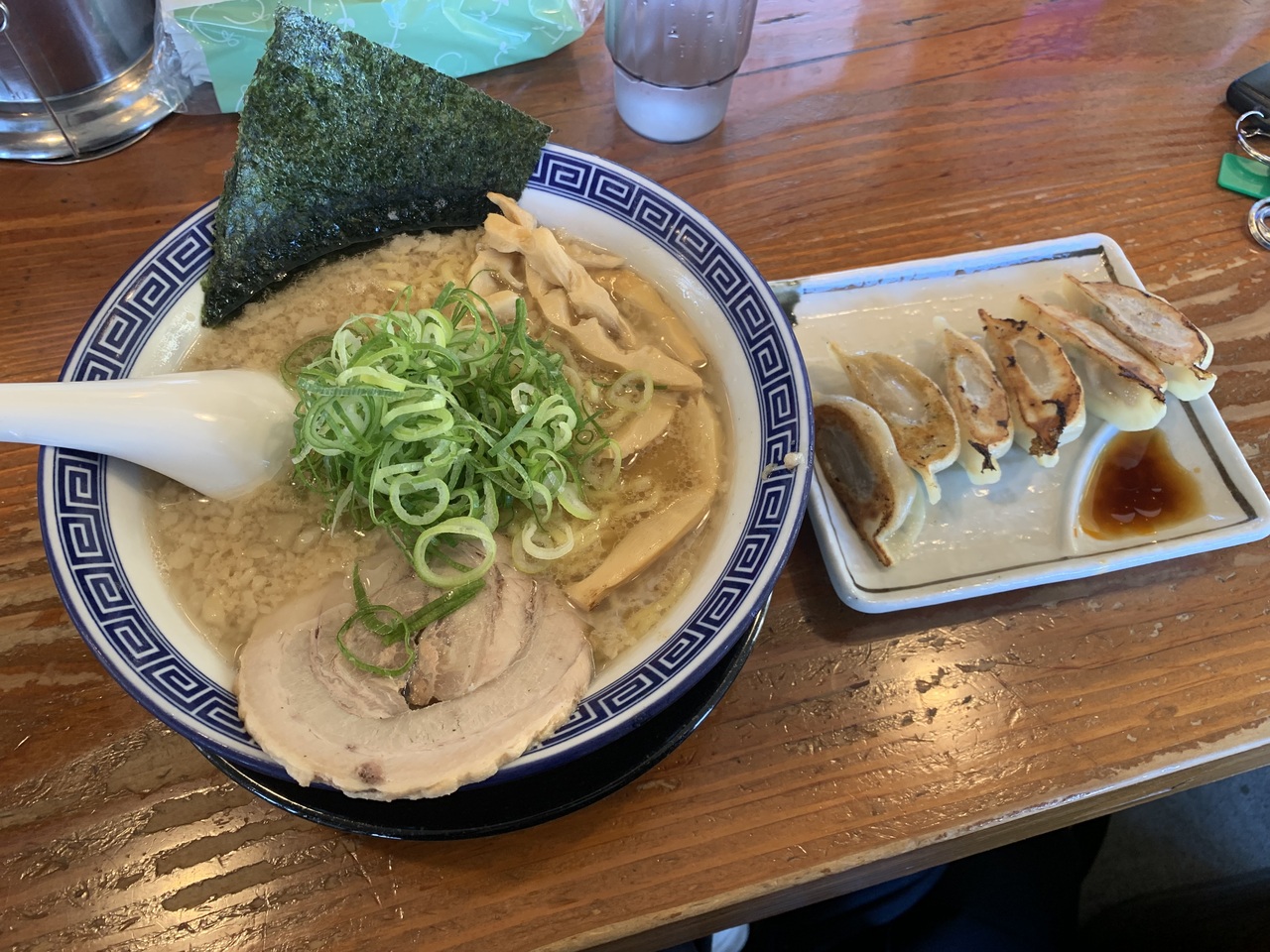 郡山市内に展開するラーメン屋です。職場を抜けてのランチに利用しました。カウンターで○得盛豚骨醤油麺と餃子のセットをいただきます。コッテリ系ではありますが、それほどくどくはなく食べやすい味。餃子も食べたら、すっかり満腹です。