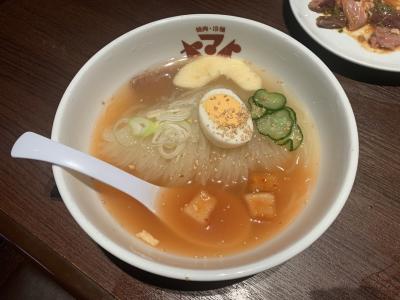 街道沿いにある焼肉屋です。ちょうど冷麺祭りが開催されていました。ランチに入り、カルビ焼肉と冷麺をいただきます。冷麺は近くにある有名チェーン店よりは美味しいと思います。これでお代は千円ちょっと。とてもリーズナブルなので、混雑していました。