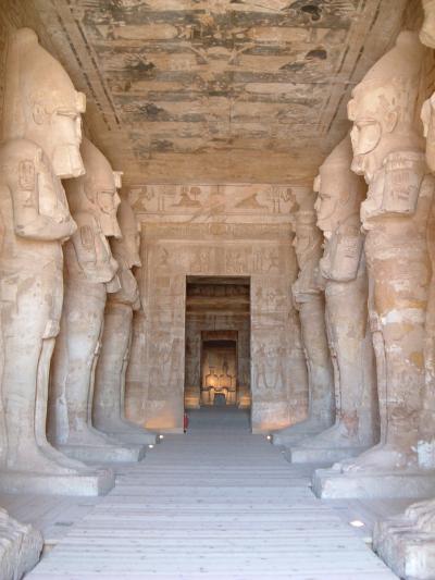 アブシンベル神殿内部。大列柱室。これまたラムセス二世の立像が8体もあり...