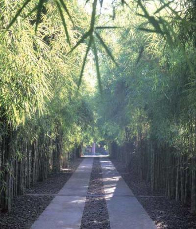ソファから庭を眺めたところ。ヴィラは全て独立していて植栽で遮られている...