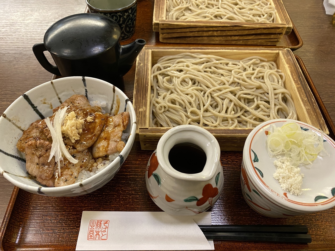 店名にあるとおりそばと豚丼を食べようと、ざるそばミニ豚丼のセットをオーダー