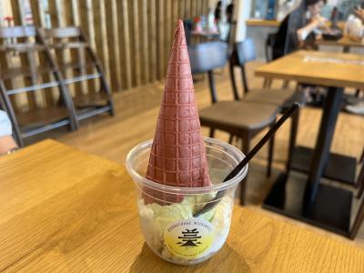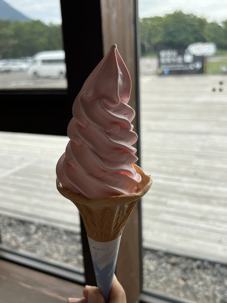 珍しく相方がソフトクリームを食べてみたいとリクエスト。ここでしか食べられないこけももソフトにしました。