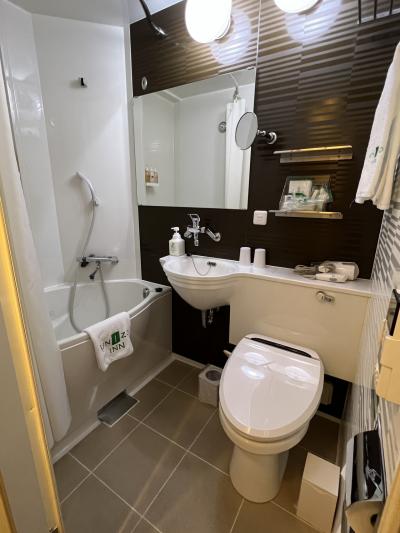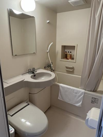 ユニットバスで暖まり、夜はベッドでまるまって過ごしました。ユニットバスの浴槽はかなり小さいです。