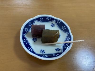 食後はサービスで羊羹をいただきました。- 旅行時期