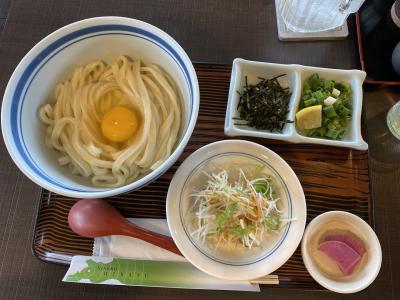 相方は釜玉、私は羊蹄山ぶっかけうどん。