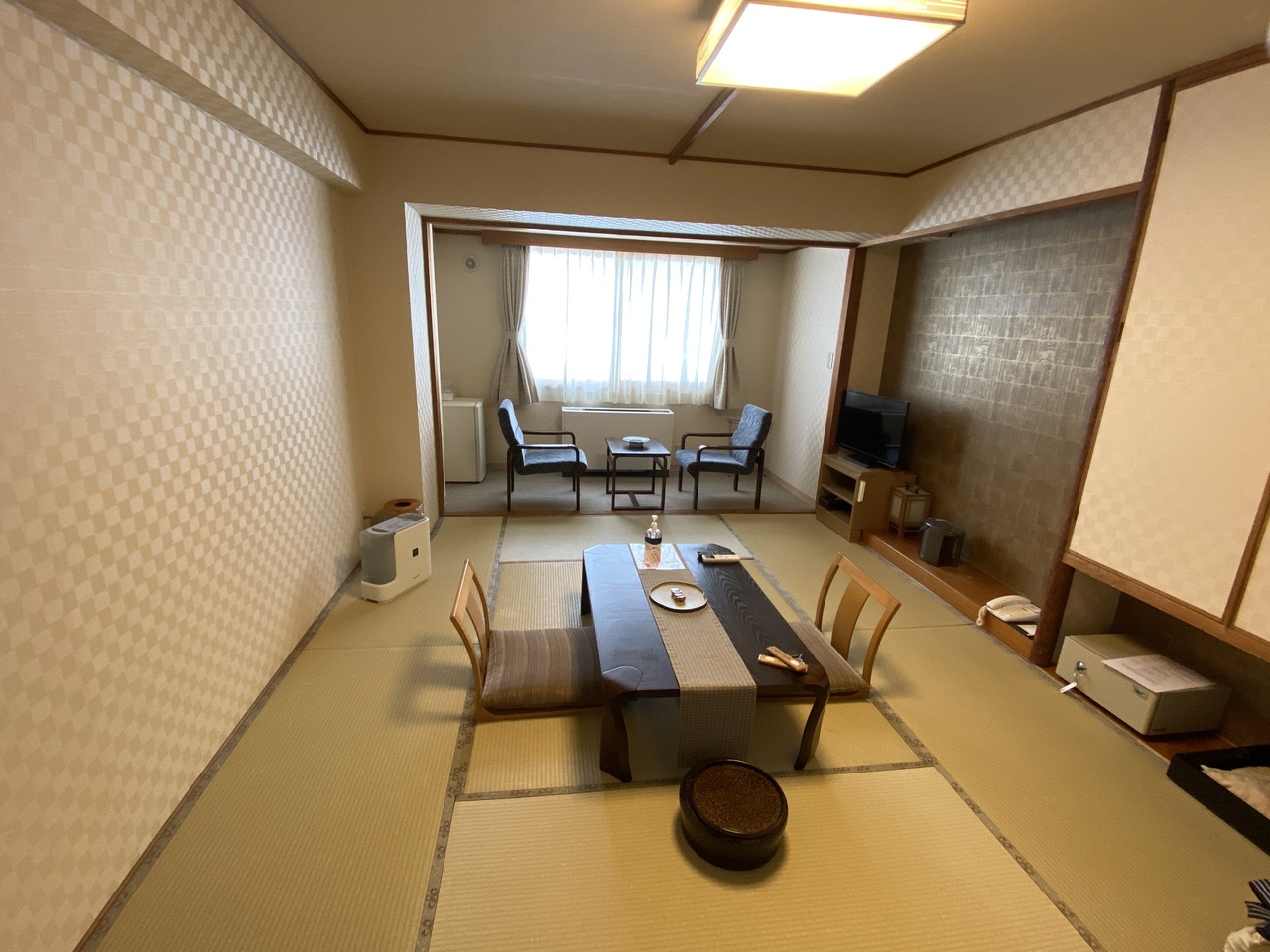 帯広のビジネスはよく泊まりますが、こちらは初めて。部屋は広めで、予約時にお願いしていた加湿器もちゃんとお部屋に用意されていました。