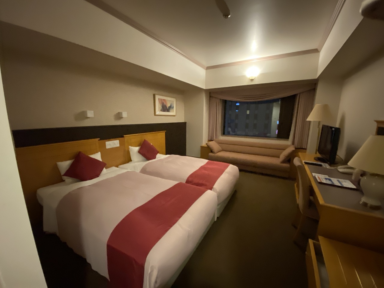 ダブルのお部屋を予約しておりましたが、ツインの大きな部屋へランクアップ下さいました。