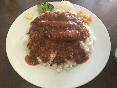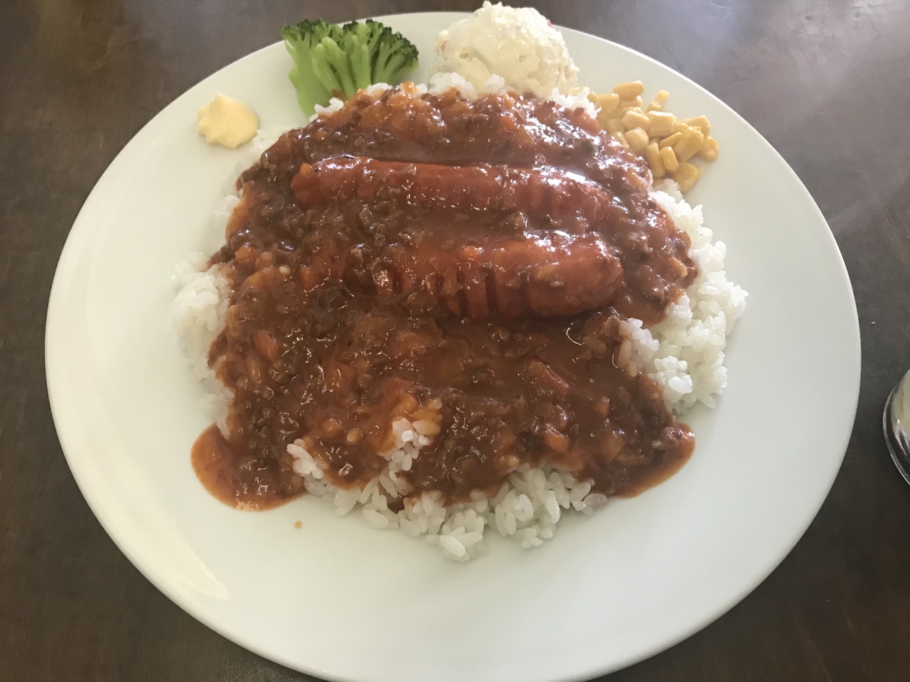 ピラフにフランクフルトにミートソース(?)をかけたような。