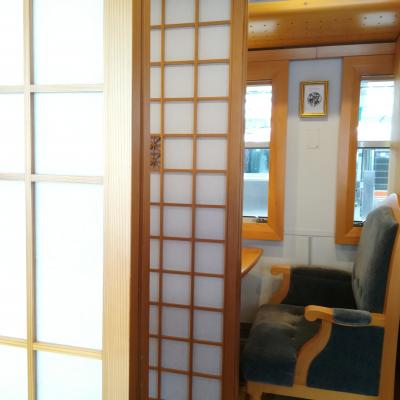 軽井沢と長野を2時間かけてゆっくり移動するしなの鉄道の人気観光列車です。1号車は指定席、2号車・3号車は食事つきプランです。軽井沢発の午前便は洋食、長野発の午後便は和食です。