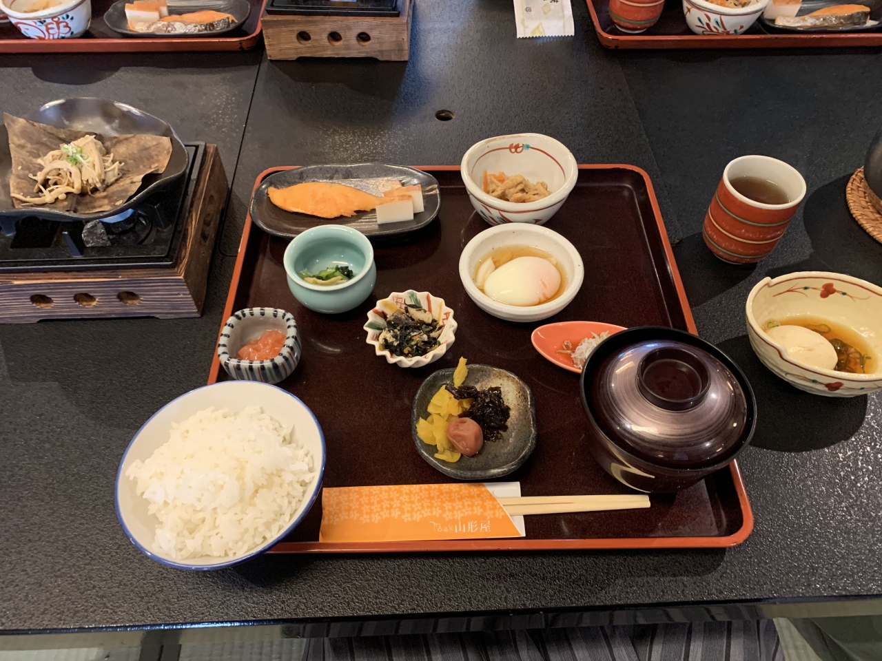 食事は朝晩お膳です。いいねー。俺は程よい高級感が好きだなー。- 旅行時期