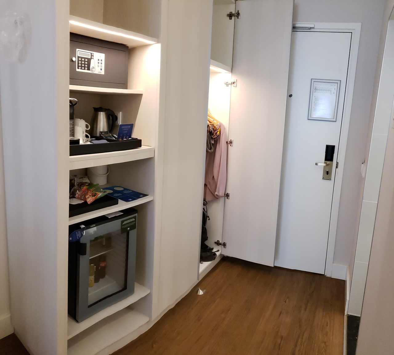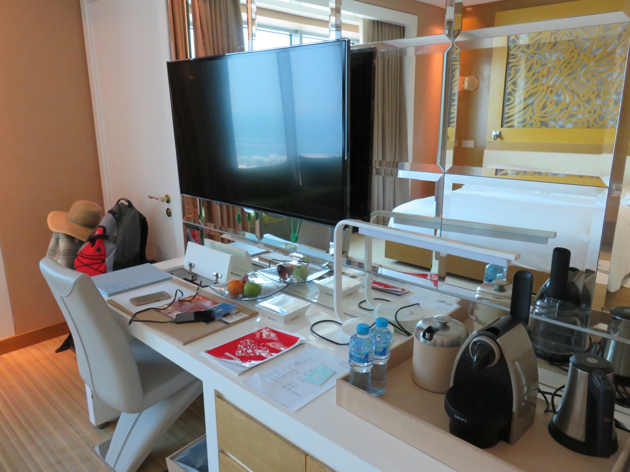 部屋はシンプルモダンで使いやすく居心地よかった。ただし冷蔵庫はプラスチックのシールが付いていて、持ち込みの飲み物等を冷やすのにはシールを破らなければ開けられず、ミニバーのチャージと混同するトラブルを予想して使いませんでした。- 旅行時期