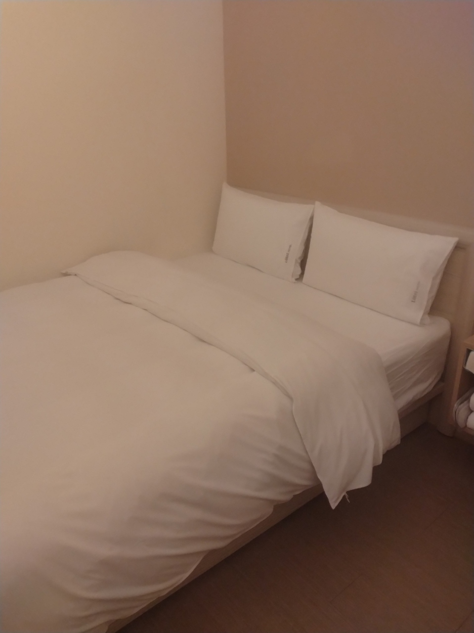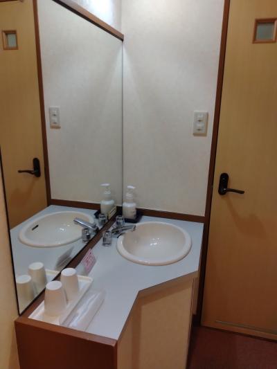 泊まった部屋は和室を作り替えたもので、ベッドでした。洗面台とウォシュレット付トイレ。トイレも綺麗で全く臭いなし。