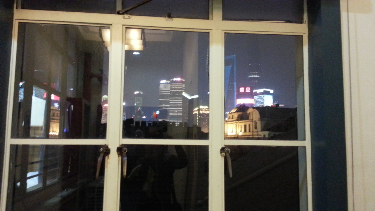 駅から徒歩で15分くらい。外灘へは1分というか、窓からタワー群が見えるほどの距離です。