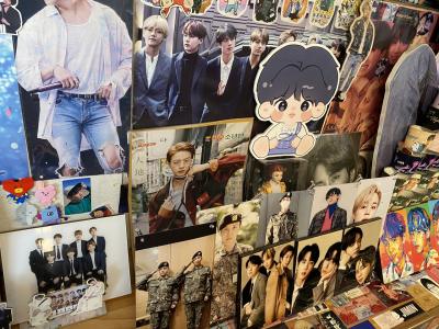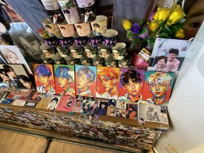 ARMYが置いて行ったと思われるグッズなどが壁や天井にまでびっしりでARMYにはたまらない空間です。