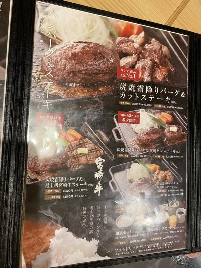 ファミレスっぽい感じですが、宮崎牛のハンバーグやステーキがお手頃にいただけます。