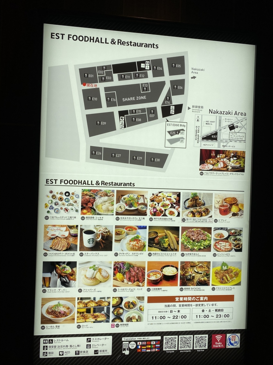 梅田のJRの高架下にあるショッピングモールの東側がフードコートになっていました。