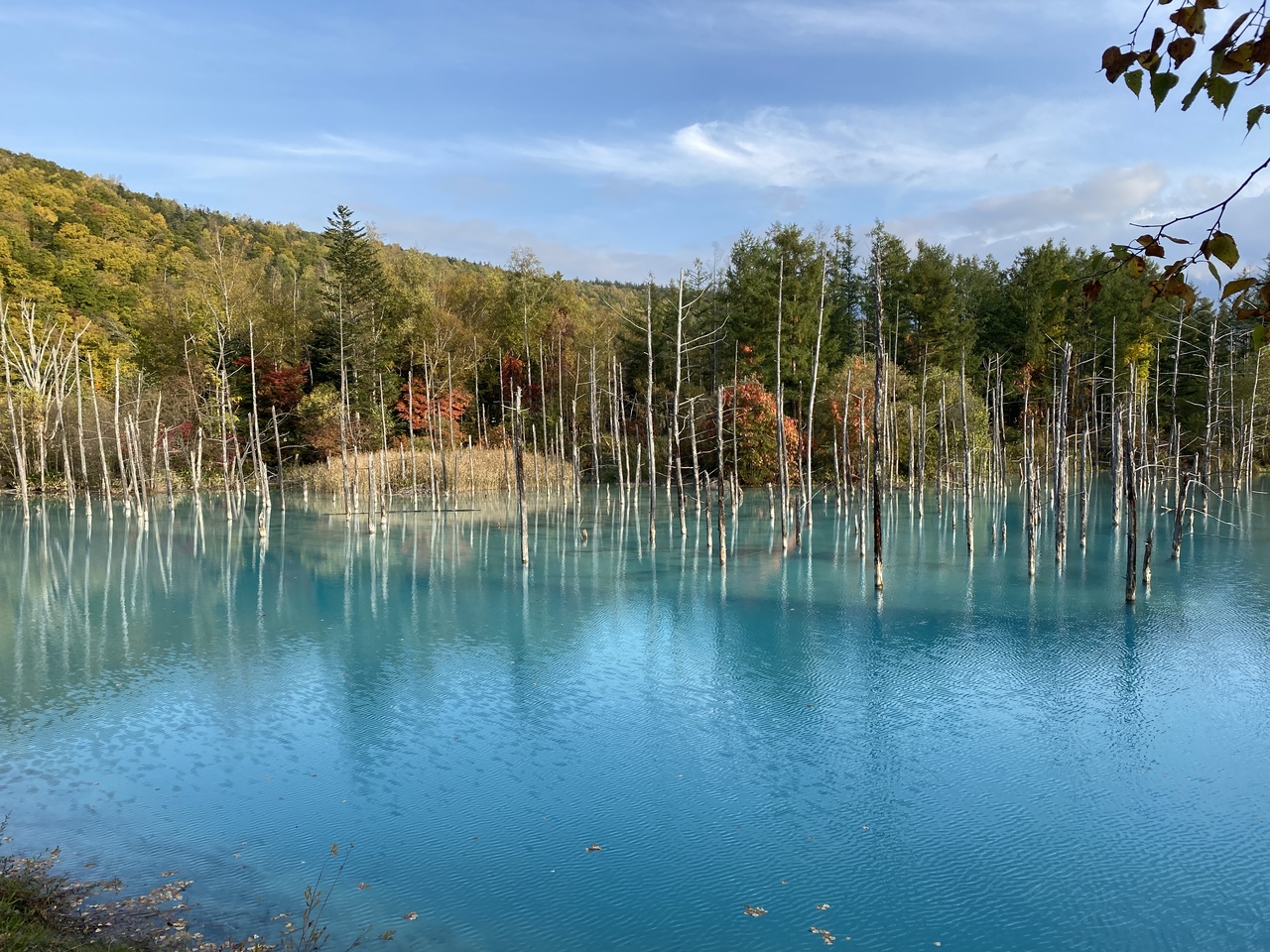 この日の天気も時間もベストではなかったですが、それでも充分青くて美しく、紅葉もあいまって素敵な景色を見ることができました。- 旅行時期