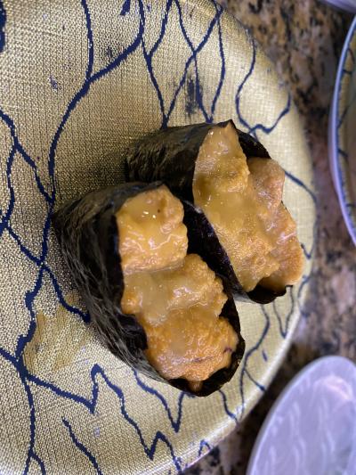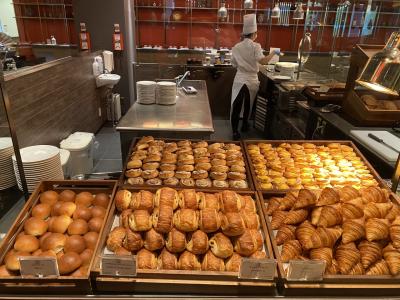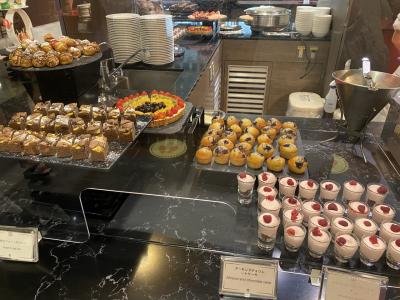 お楽しみの食事は、ビュフェですが今はコロナ対策で自分で取らず(触ると怒られる)、盛り付けたものを渡されるシステムになっていました(が、なぜかドリンクは完全セルフ)