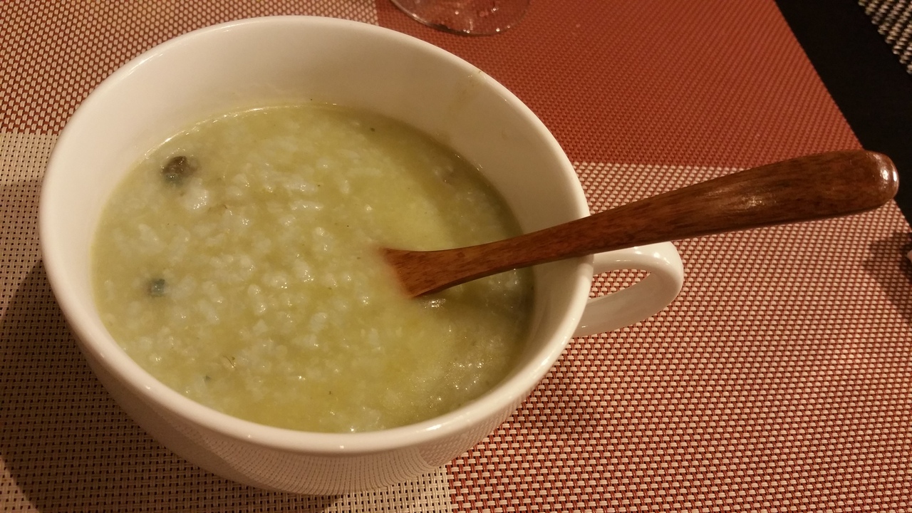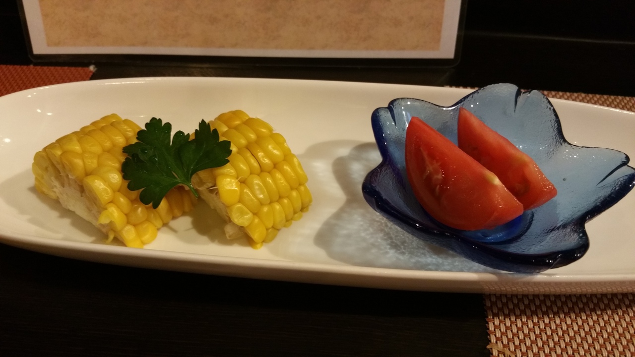 季節の野菜は甘いトウモロコシとウマウマフルーツトマト。お次の高級たまご蘭王で食べる石焼き和牛すき焼きもウマウマ。〆はすき焼きのおじやかあわび粥からあわび粥を選択して、優しいウマウマ粥でお腹いっぱいになりました。