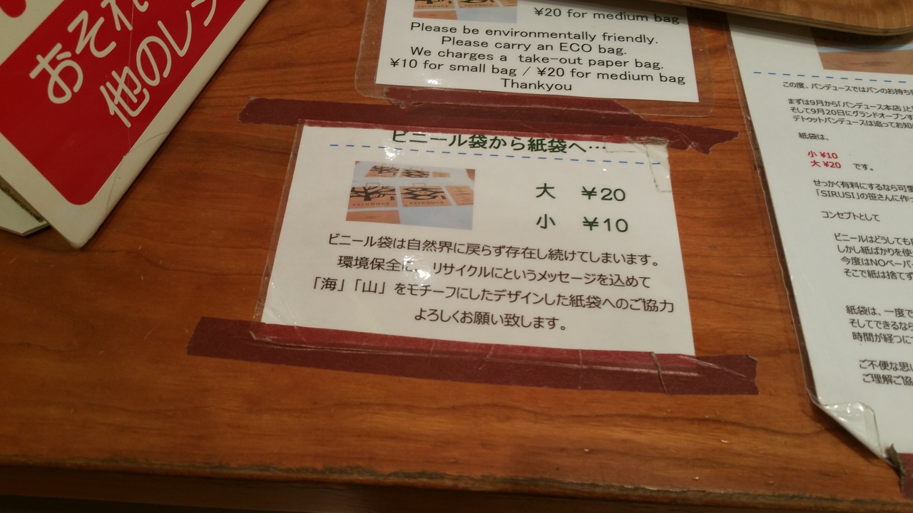 持ち帰り用の袋は有料で、こだわりの紙袋のようです。- 旅行時期