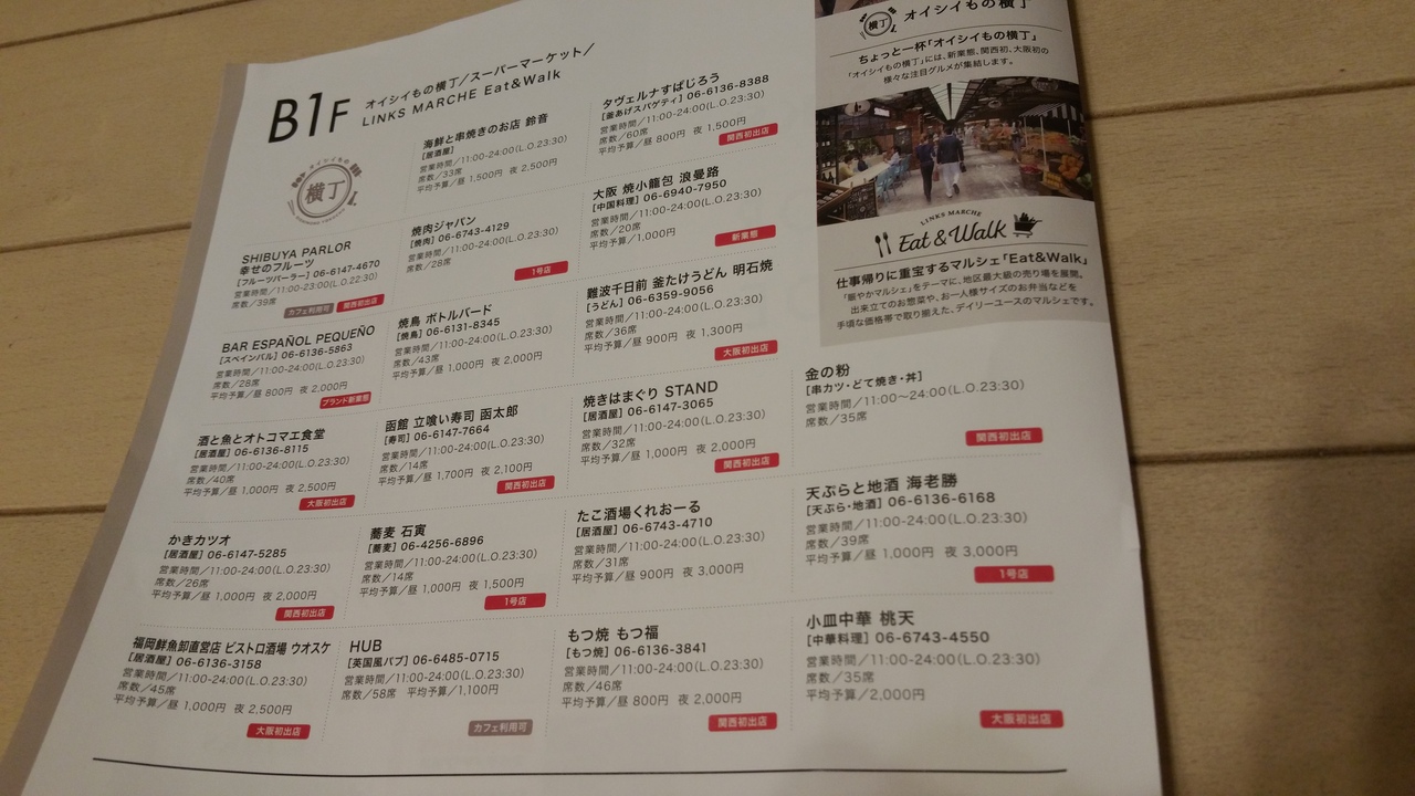 地下1階のオイシイもの横丁は大阪初出店、関西初出店、新業態、1号店が目白押しです。- 旅行時期
