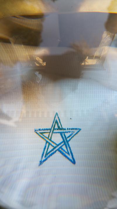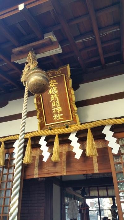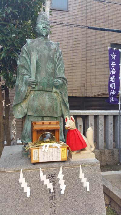 安倍晴明像があり、そこに大きな水晶がはまっていて、水晶を覗くと神社のしるしの星形が見えます。