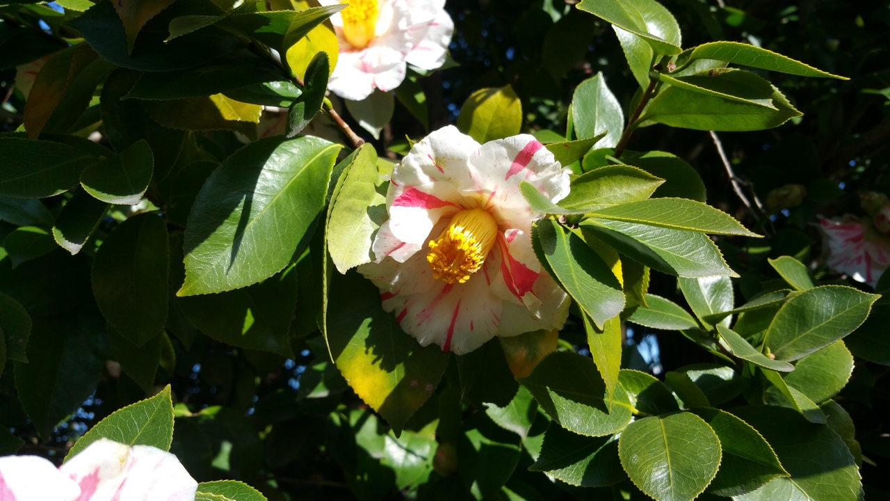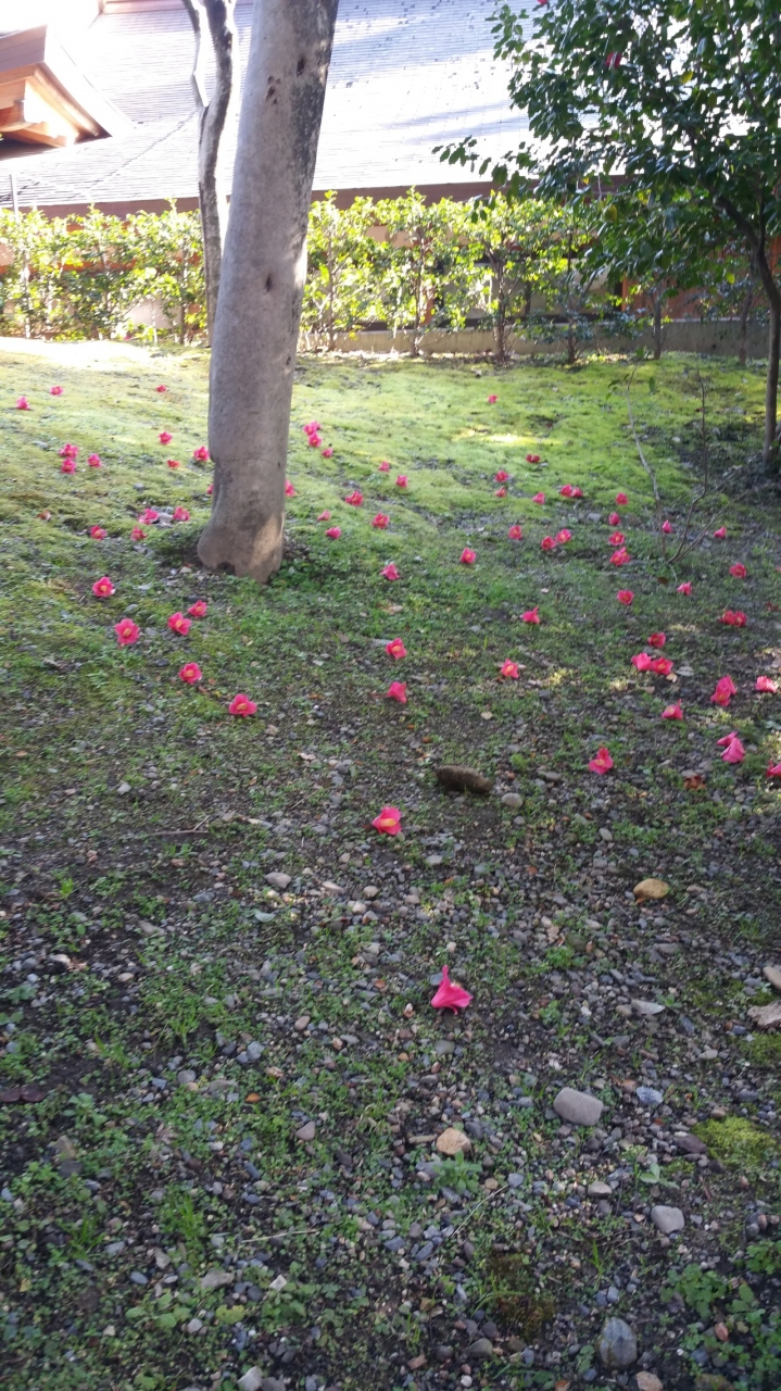 神苑に入ってすぐ散り椿が、そしてピンクと白のしだれ梅が思わず声が出るほどキレイです。