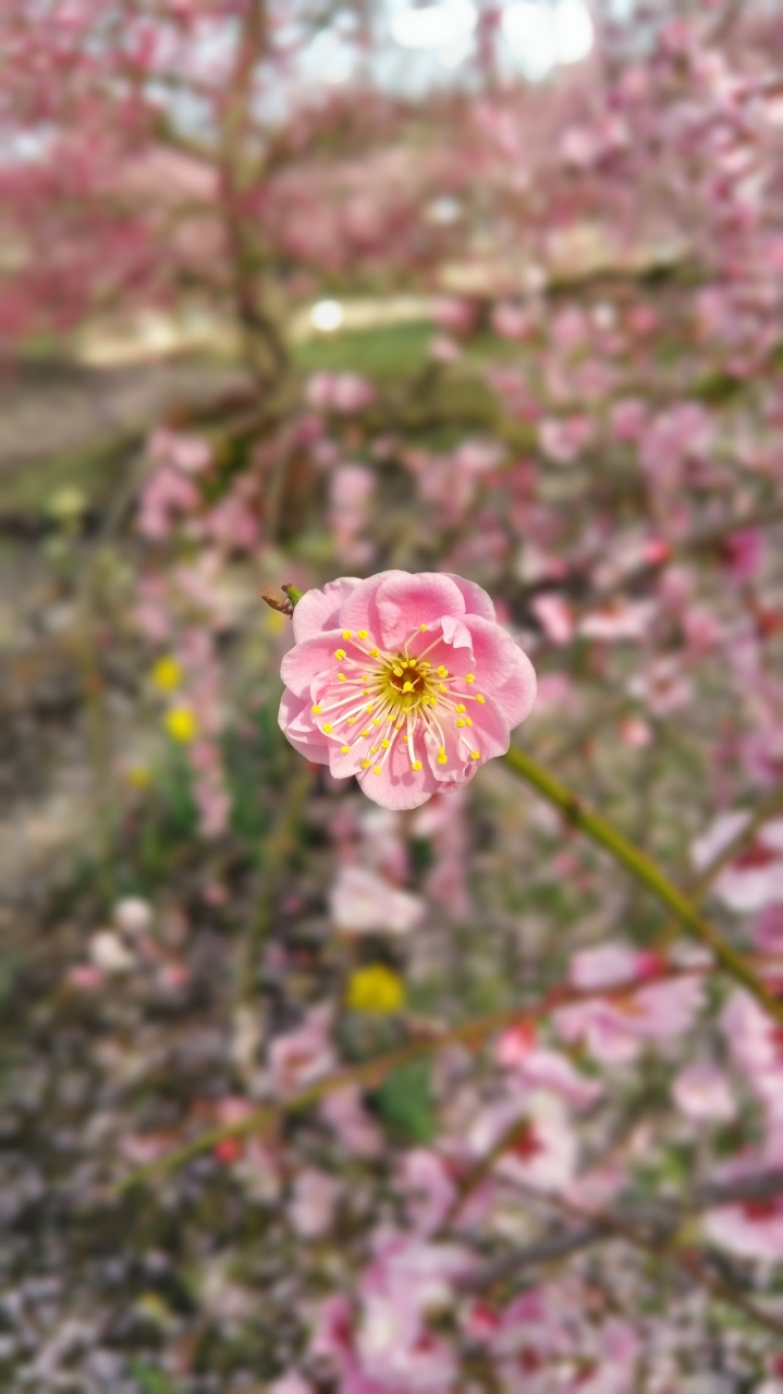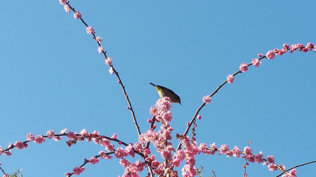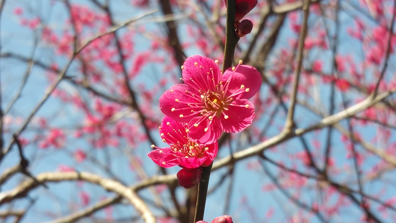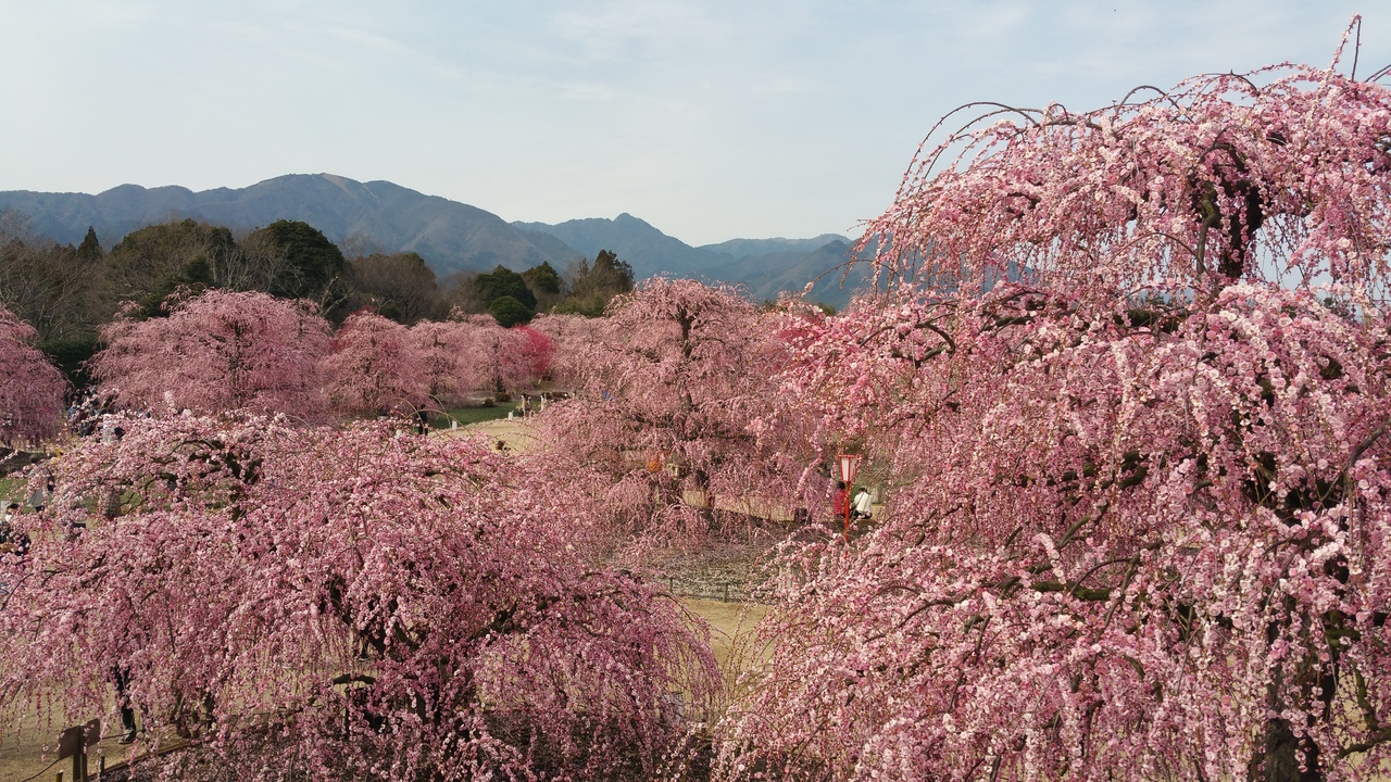広い平坦な敷地に白、ピンク、紅の梅の花がたくさん咲いており、梅の香りに包まれます。