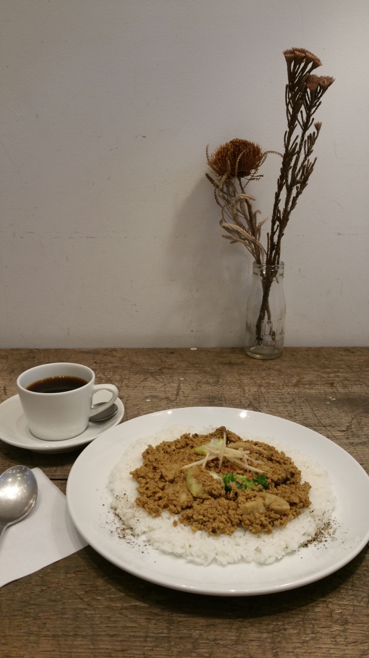 キーマカレーかタマゴサンドで迷いましたがキーマカレーをチョイス。