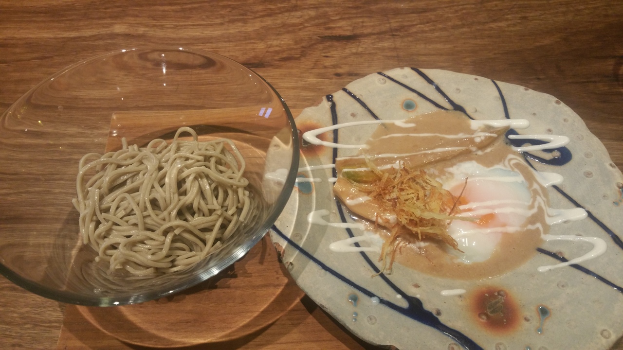 おすすめに十割そばを豆乳のソースに絡めて食べるメニューがあったので頼んでみました(1200円税込)