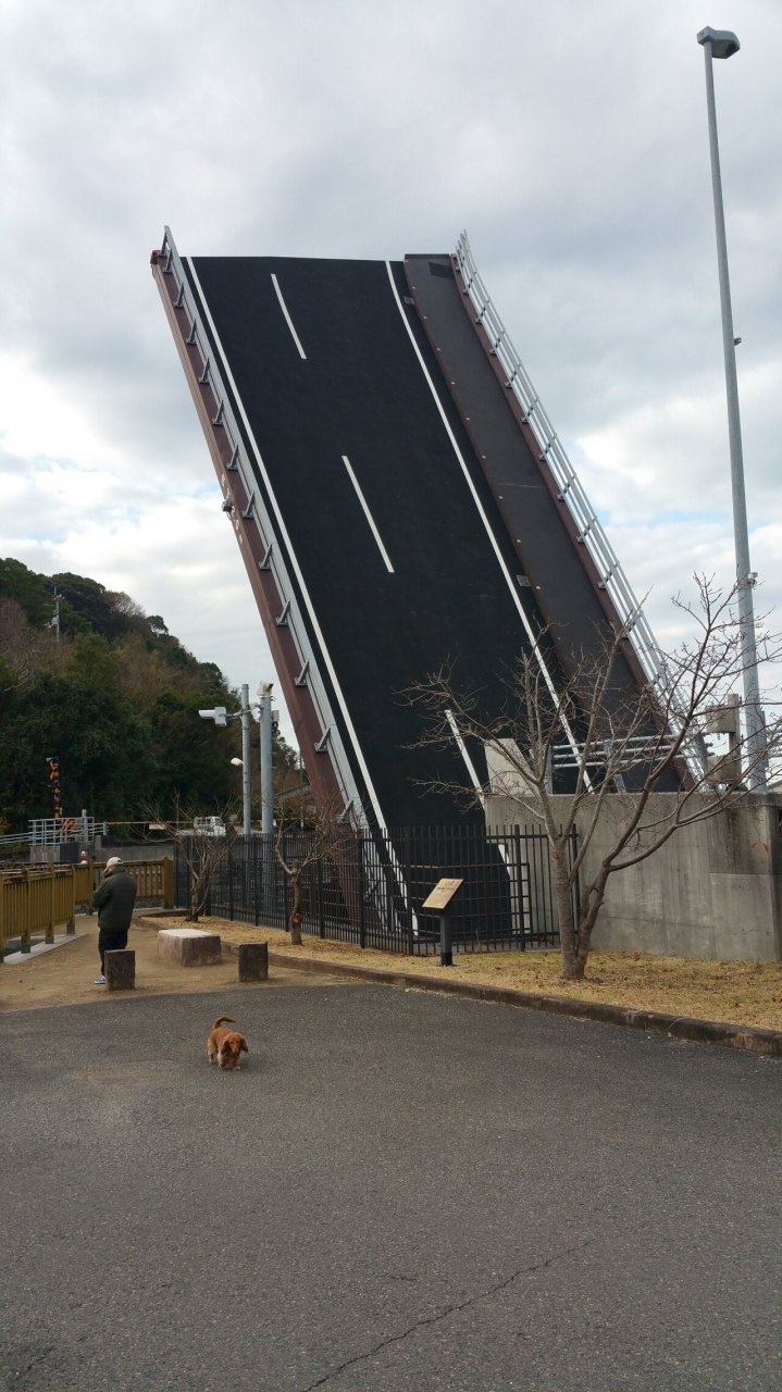 橋の両端(^_^;)が階段になっているので、車は無理ですし、自転車も厳しいです。