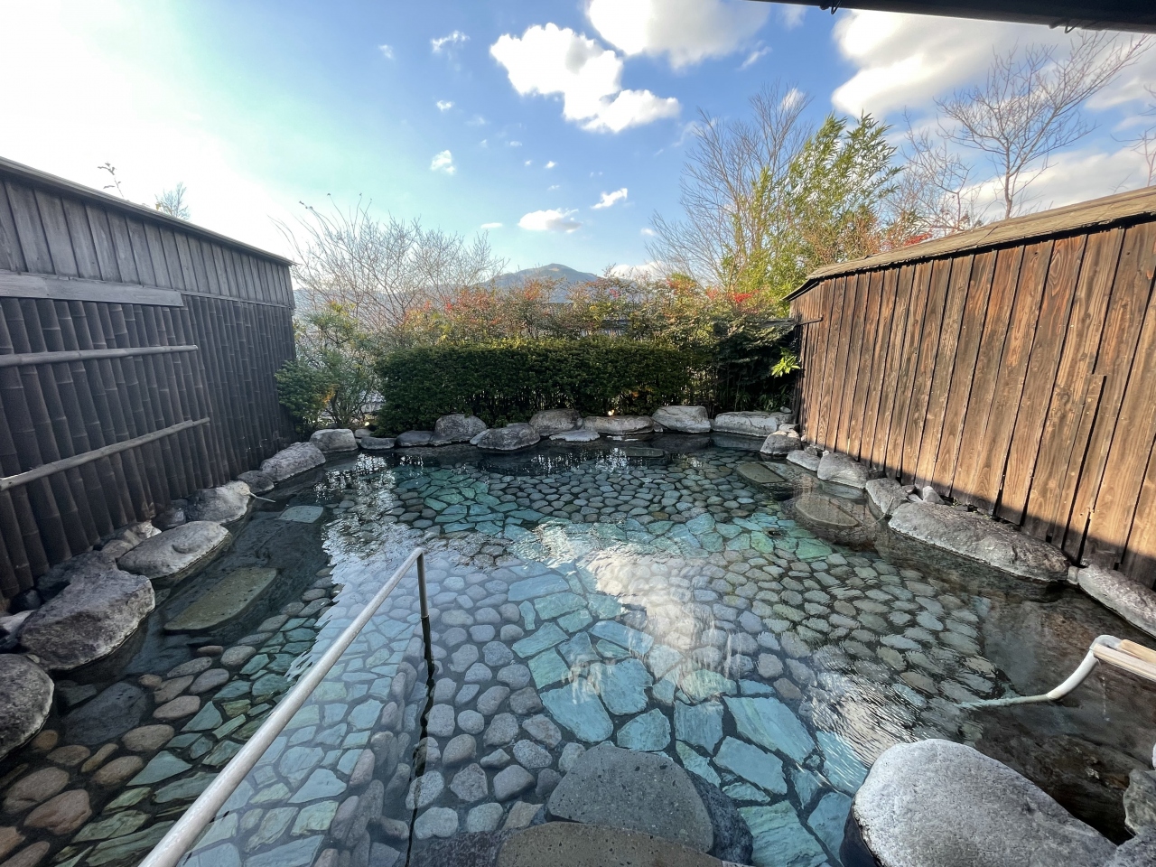 大浴場は少し小さく感じました。特に脱衣所が狭く感じました。しかし、週末でおそらく満室に近いものの、何回も入りましたが、ほとんど人と重なることなく、貸切状態でゆっくり別府観音寺の湯を満喫できました。無色透明でインパクトはないお湯ですが、入ればツルツルでとても肌にやさしいお湯で最高ですね。1回だけ貸切風呂も利用でき、檜風呂と岩風呂の2つがあり、二人でのんびり贅沢な別府の湯浴みでした。