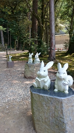 大きな鳥居をくぐり参道を本殿に向かい歩きます。出雲大社といえば大きな注連縄と思っていましたが、境内のあちらこちらにウサギが…注連縄だけでなく、ウサギたちとふれ合いながらのお参りはご利益がありそうです。そして、縁結びとは、恋仲だででなく、旅も仕事も日常も…出会いがすべての縁結びなんですね!これからもすべてのご縁を大切せねばなぁ~とあらためて気づかせていただきました。
