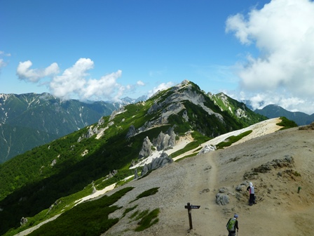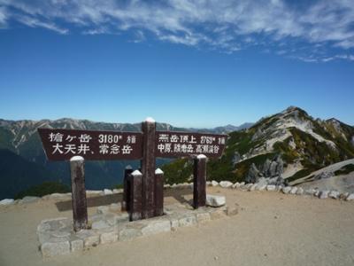 表銀座で槍方面と常念方面の分岐となる場所。大天荘への登りはツラいですが大好きな小屋のひとつでテント場もあります。小屋からも北アルプスの山々が一望できますが、10分くらいなだらかな道を歩いけば(スリッパでも行けた)大天井岳の頂上へ。大天井岳からの眺望は素晴らしく槍ヶ岳も目の前に。(サンセットの時間は特にオススメ)