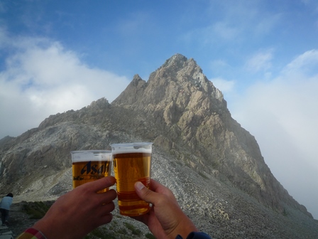 山はやはり天候が問題ですが、ここの山荘に滞在していると、うまくガスがとれそうな瞬間にも槍ヶ岳山頂を目指すことはできますし、小屋の前のテラスからは槍ヶ岳や常念岳の刻々と変わる山容を生ビールを飲みながら眺めることもでき、なんとも贅沢な時間です。