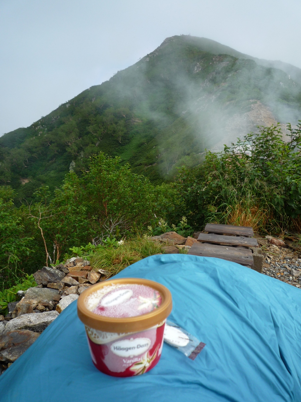 またテント場については競争率が高いです。さらに岩と岩の間に張るので初心者には張りにくく難しいテント場でした。しかしベストなテント場からはテントの中から槍の穂先を眺めることができます。
