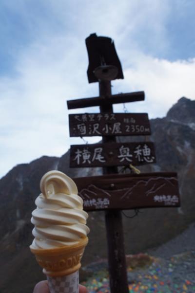 涸沢にはカール中心部にある涸沢ヒュッテと上部にあるこの涸沢小屋の2軒の山小屋があります。涸沢ヒュッテよりも小規模でアットホームな山小屋です。涸沢カールを真下に見渡すロケーションにテラスがあり、生ビールはもちろんのこと、美しいカップで入れられたコーヒーもいただくことが出来ます。そしてソフトクリームもおいしいです!
