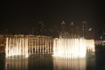 ドバイモールの目の前で18時から23時まで30分おきに開催されます。1回のショーは約5分間です。最初は土曜日の夜に行きましたが休日だけあったかかなりの人・・・月曜日の方がゆっくり見れました。ドバイモールの紀伊国屋にあるキノカフェのテラスがおすすめのスポットらしいですが、店員さんに聞くと見れないと言われました。もしかしたらすぐ目の前のビルが工事中なので見れなくなったのかも・・・なので上から見えそうなテラスのあるカフェ(THIRD AVENUEやDEAN&DELUCAなどがあります)から見ました。ファウンテンの全景が見渡すことができ素晴らしいかったです。ラスベガスのベラージオの噴水ショーも見たころとがありますが、本当にどちらも素晴らしい。ドバイに来たら必ず見る価値はあると思います。