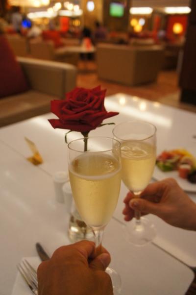 ラウンジ中央部付近にシャワールームがあり、受付をしてから利用することができます。ダイニングコーナーは各所にあり、食事もドバイのホテルで食べた食事よりもおしいかったです。アルコールも充実しておりモエシャンも飲み放題。