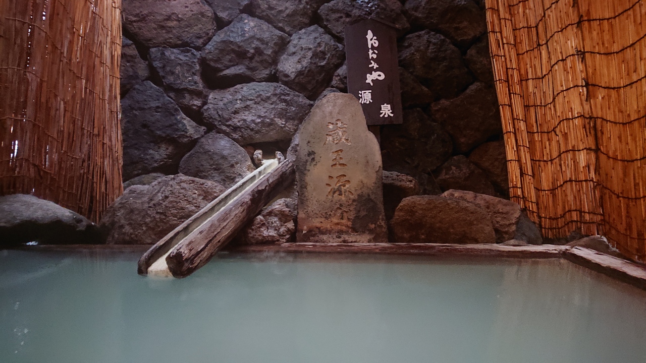蔵王温泉の源泉が湧出し白濁の濃度も濃く感じ素晴らしいお湯です。お湯も宿もすごく気に入り遠いながらも昨年2018秋続き2回目の宿泊です。部屋も「大正ロマンを感じさせる」というキャッチで全館畳敷き、お部屋は和モダンにリノベーションされていてどこも清潔でとても居心地がよいです。