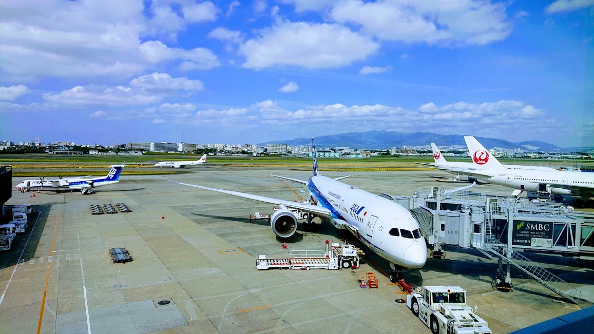 「日本のたたずまい」をデザインコンセプトに2017年2月に和モダンなラウンジにリニューアルされました。那覇空港はJALもANAもラウンジ面積が狭く窓も小さめ。どうしても混雑気味にはなってしまいますが、ラウンジ内にトイレもあり、フライトまで喉を潤しながらスマホ充電できるラウンジは便利です。