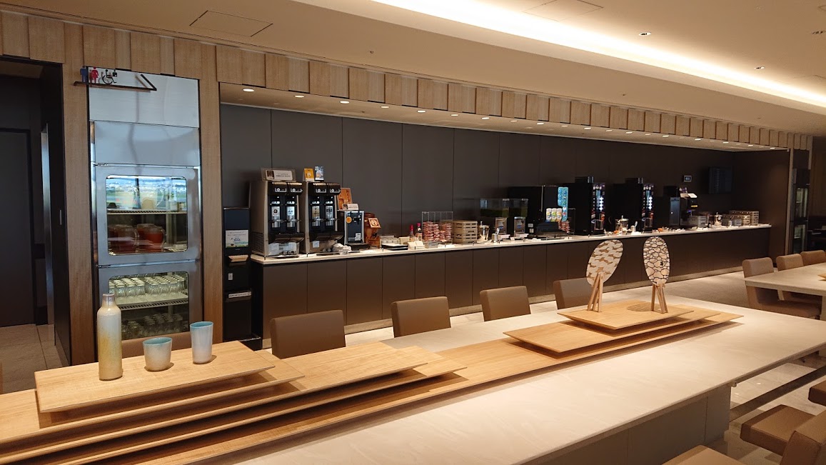 伊丹空港リニューアルに伴いJALサクララウンジも2019年3月下旬にリニューアル完成しました。木を豊富に用い「日本のたたずまい」を感じさせる和モダンな落ち着いた雰囲気のラウンジに。窓際のカウンターテーブルはANAラウンジの方が長いように感じるため、ANAラウンジより狭く感じます。しかし一番利用する最寄り空港ですのでリニューアルされてよかったです。ちなみに仮設ラウンジ時にあった伊丹空港限定パッケージのお菓子などはなくなり残念…