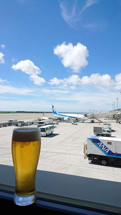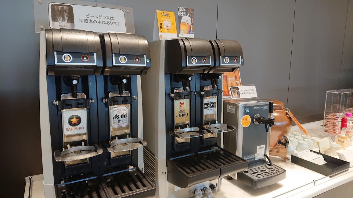 いつも混雑しているラウンジですが、窓もあり白を基調としているので窮屈さはそれほど感じさせません。ここの生ビールサーバーは沖縄のオリオンビールですので、アルコールがOKであれば旅の最後まで沖縄気分を楽しめます。