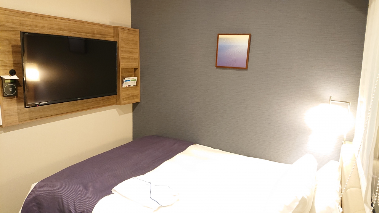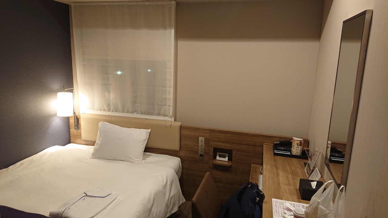 部屋はセミダブルというだけあって、さすがに狭さは否めないですが、寝るだけならば問題なしです。