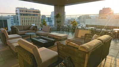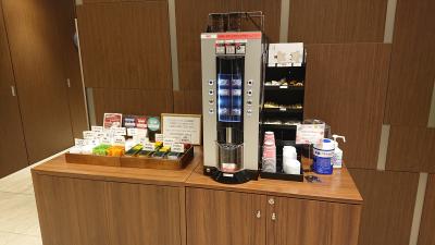 ラウンジはチェックインフロアと同じ最上階14階にあり、コーヒーなどの飲み物がほぼ終日フリー、夕方時間帯はワインなどもフリー、さらに夜食はお茶漬けサービスなどもあります。テラスもありとても開放的。