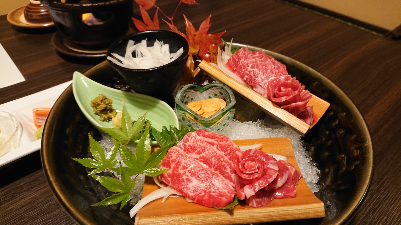 特によかったのは夕食。器や盛り付けも美しく、地の旬の食材を楽しめました。また@1000円くらい割増の馬刺しプランにしましたがとてもおいしかったです。馬刺しがないと食事全体のボリュームはないかもしれませんのでぜひ付けられることおすすめします。