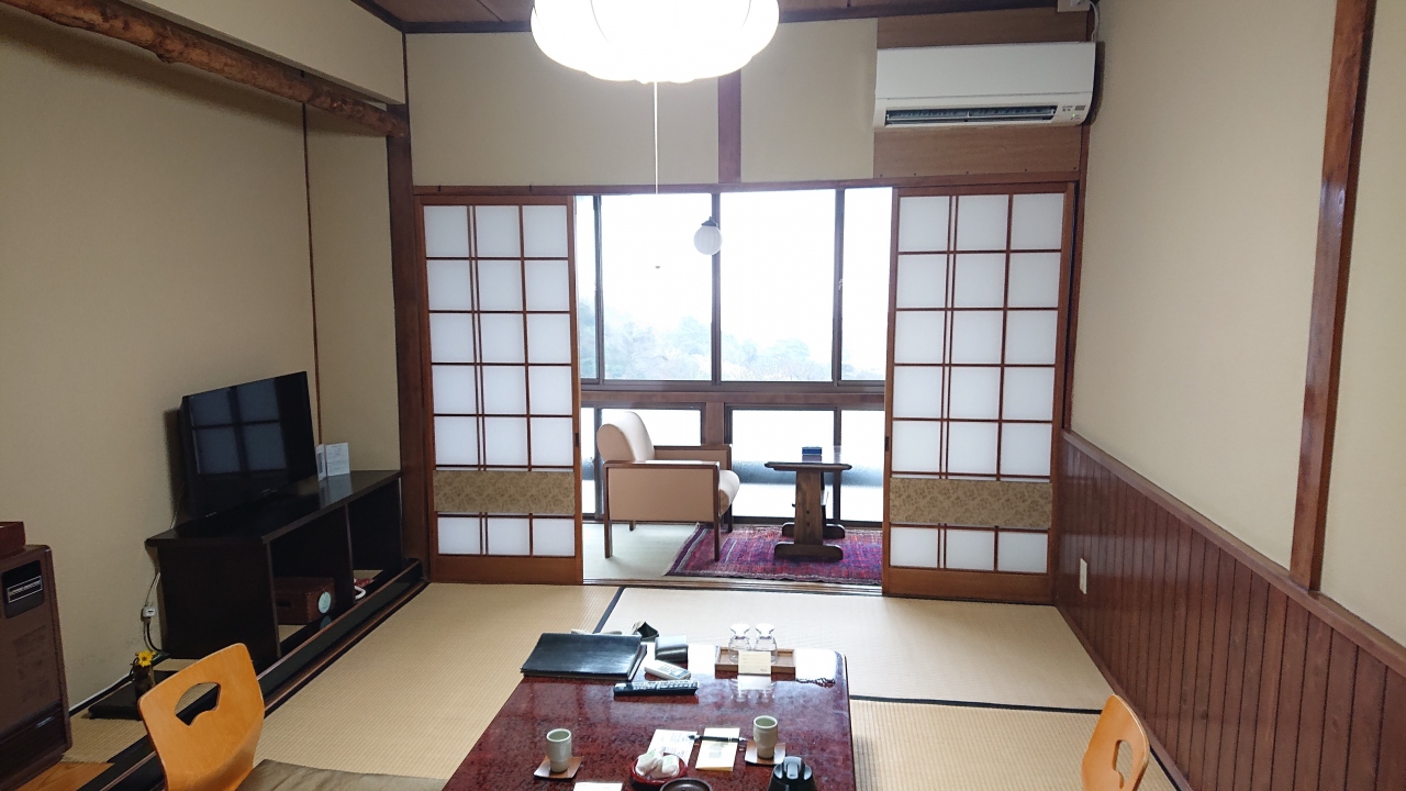 お部屋は一番下のカテゴリーで10畳和室。2名にはちょうどよい広さで、新しくはないですが清掃も行き届き快適な部屋でした。
