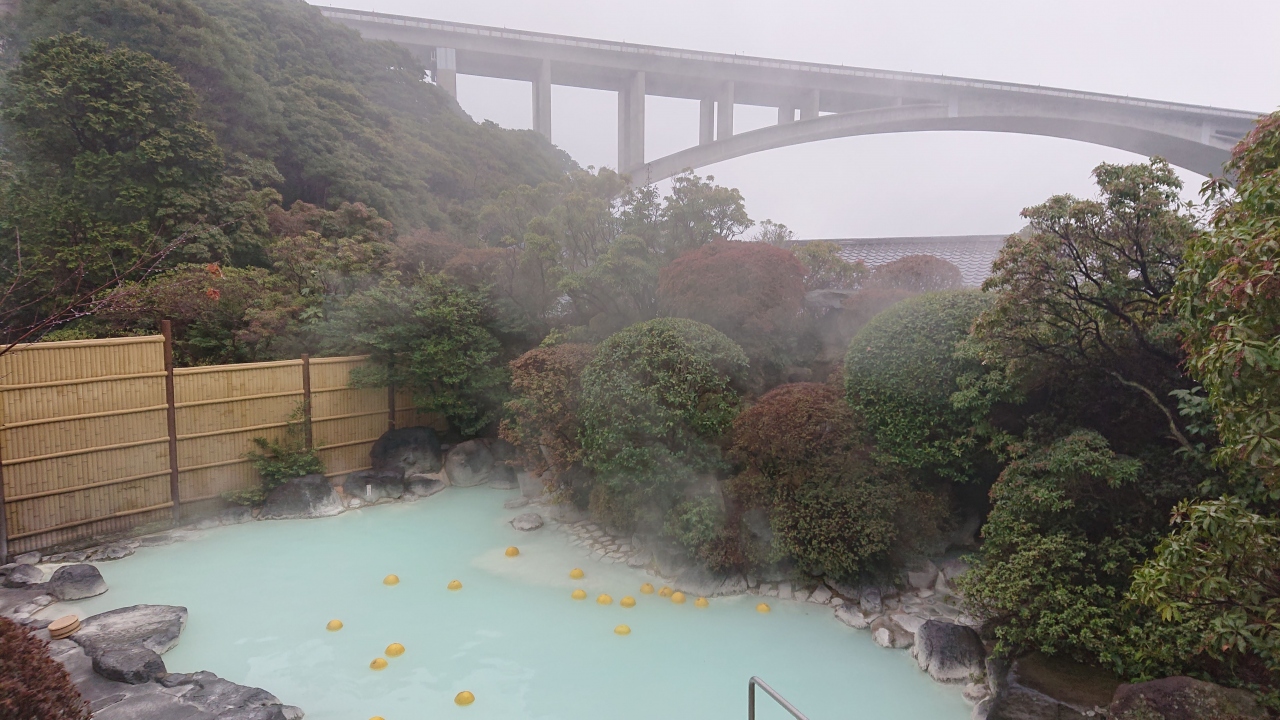 1週間前にミルキーブルーの温泉に魅かれ予約。別府明礬温泉の代表する歴史あるお宿です。