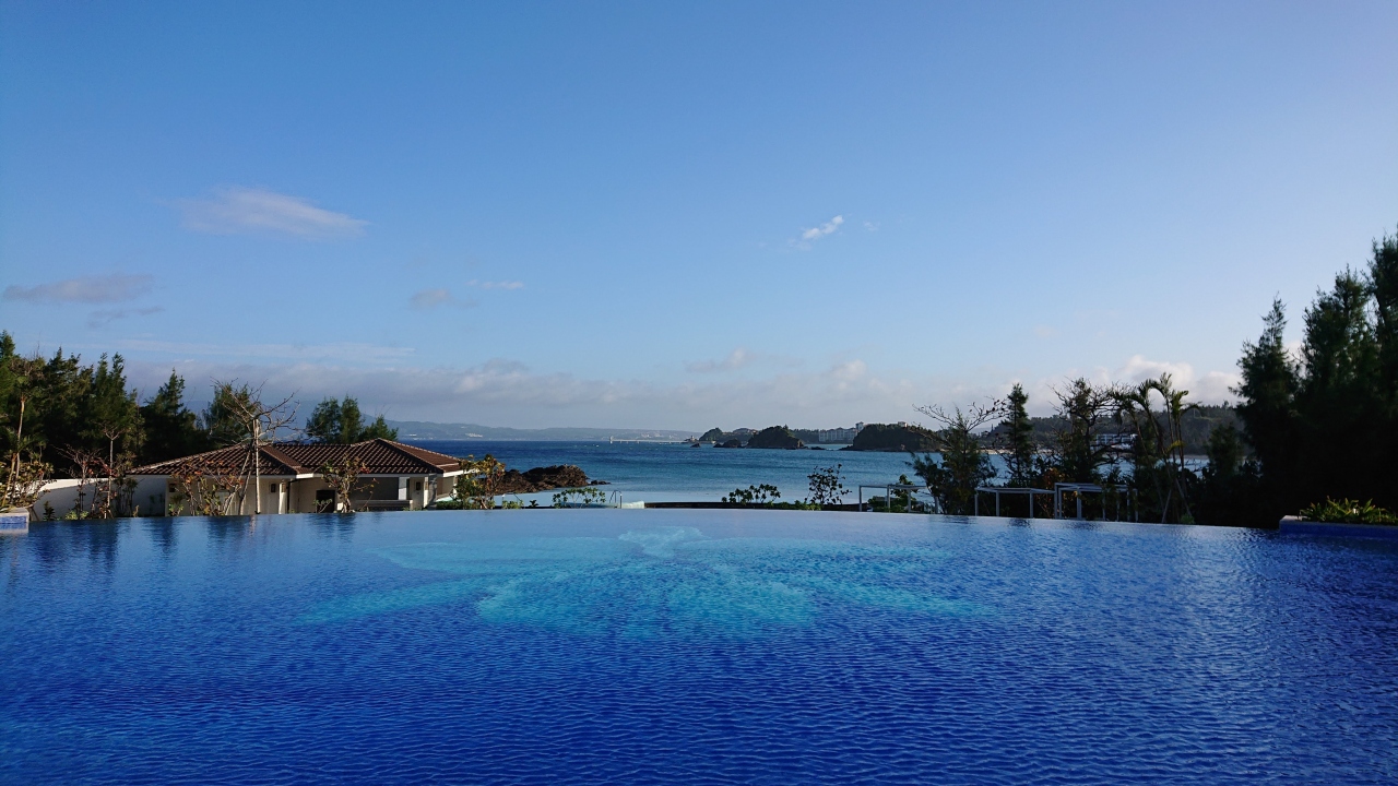 部屋の建物自体は、ビーチフロントウイングとサンセットウイングがあり、ビーチフロントウイングの方がリーズナブルなようです。ビーチフロントウイングのDXオーシャンビューとプレミアオーシャンビューの部屋の造りは同じようで、上層階か下層階だけの違いです。部屋のバルコニーからはホテルのメインプールオーキッドプールや本部半島が見渡せます。でも隣の部屋のバルコニーが丸見えです…